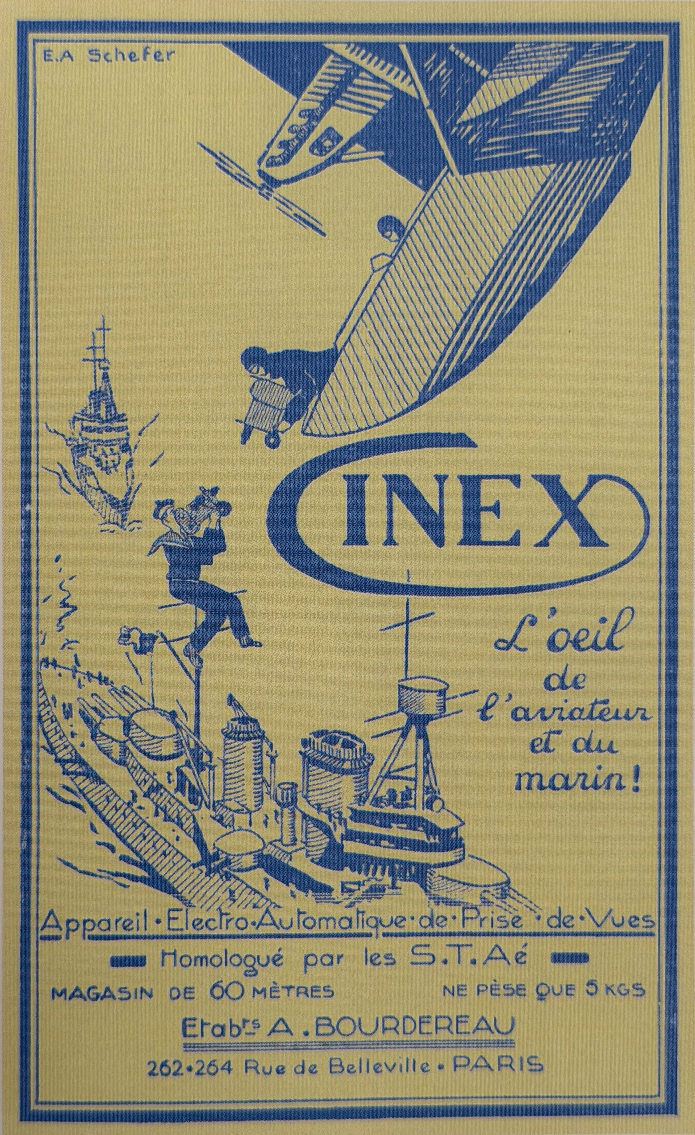 When it was first introduced, the Cinex was the smallest 35mm motion picture camera in the world. Its compact size quickly caught the attention of pilots, and the French Air Force became interested in equipping its aircraft with Bourdereau's camera.