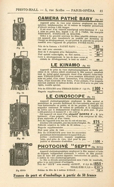 The early 1920s saw a wave of compact camera development across Europe, each manufacturer chasing the same goal — a smaller, more portable camera for the growing amateur market. In Germany, Arnold & Richter was developing their first camera, the Kinarri 35mm, a compact round-bodied design that would lay the groundwork for what eventually became the Arriflex. In Paris, André Debrie had introduced the Sept 35mm — a clockwork-driven camera so compact it nearly fit a coat pocket, and capable of doubling as a still camera, projector, and enlarger. Yet another compact French entry was the spectacular Établissements A. Bourdereau Cinex 35mm. Also in France, Syndicat Industriel introduced the Le Cinoscope, a dual-purpose camera-projector aimed squarely at the amateur market and sold in both France and Italy. The Cinoscope arrived just as 16mm and 9.5mm safety film systems were gaining traction with consumers — smaller formats, safer film stock, lower cost. That timing likely hurt it. The camera is relatively scarce today.